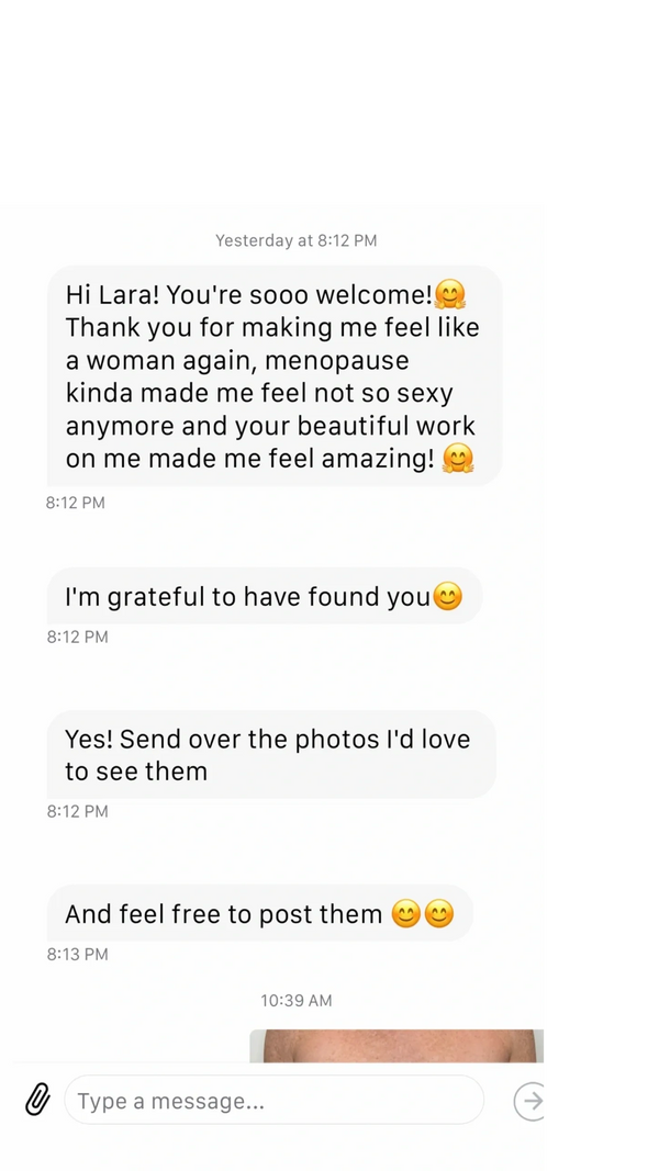 Lara offers both virtual and in-person consultations to determine if you are a good candidate, explain the procedure and give you the opportunity to answer any questions you may have. You can book a consultation online by clicking "book a consultation" at the top of the page.