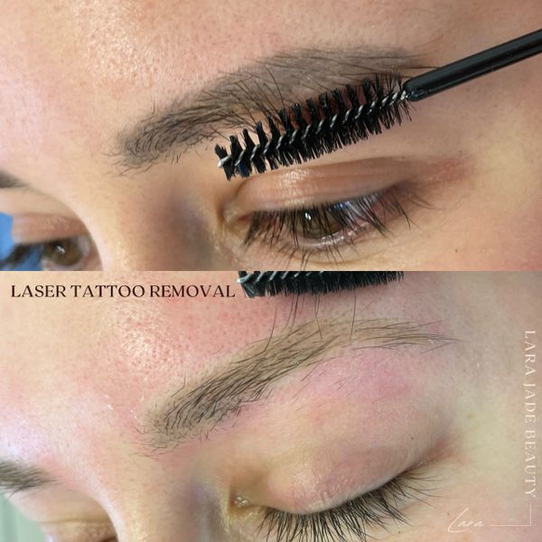 There is no down-time for laser tattoo removal. The area will be a bit red and swollen and calm down over the next few hours. You may wear makeup on the brows the following day as long as there is no break in the skin.